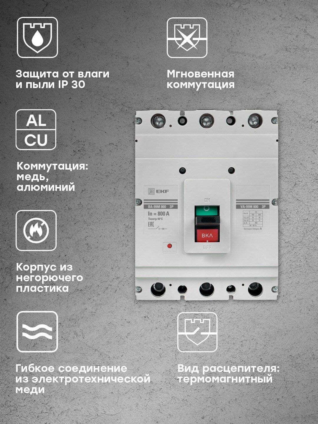 Выключатель автоматический в литом корпусе ВА-99М 800/800А 3P 10In 50кА с термомагнитным расцепителем EKF mccb99-800-800m