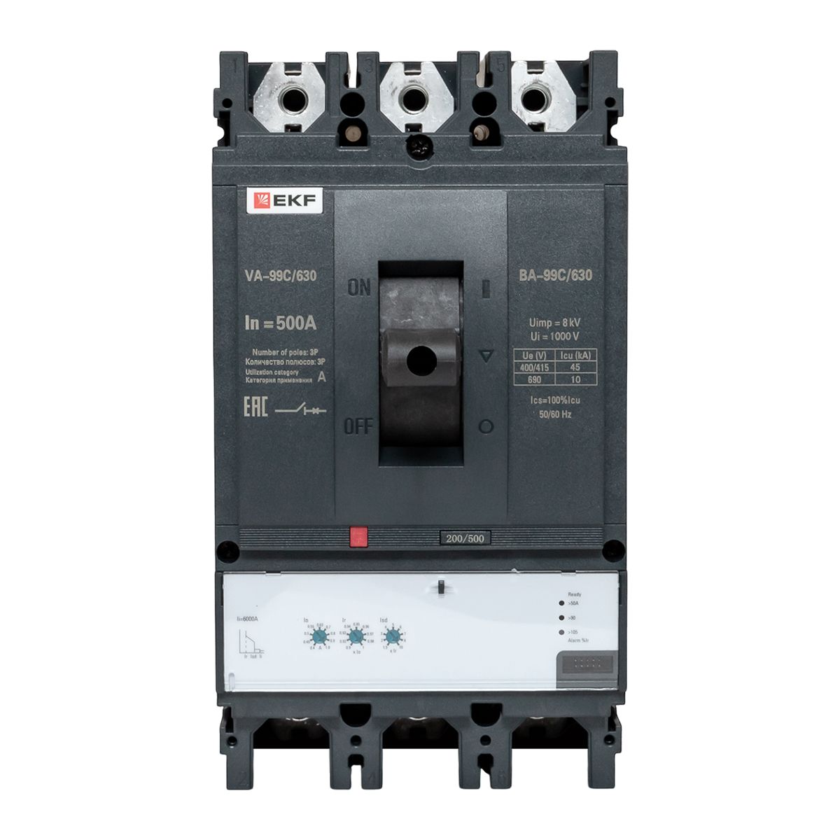 Выключатель автоматический в литом корпусе ВА-99C 630/500А 3P 45кА с электронным расцепителем EKF mccb99C-630-500